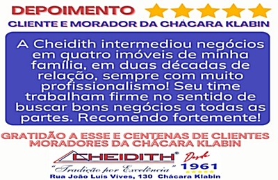 Com mais de 60 anos de tradição, a Cheidith Imóveis é a imobiliária mais antiga e pioneira da Chácara Klabin. Somos referência em comprar, vender e investir, sempre com ética, profissionalismo e atendimento personalizado.