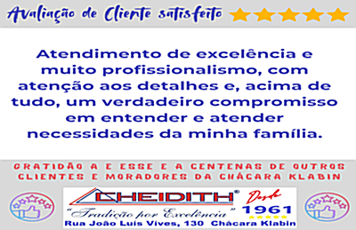 A reputação da Cheidith vai além da tradição: ela é comprovada por centenas de clientes satisfeitos, que avalizam publicamente a excelência no atendimento por meio de depoimentos e avaliações espontâneas.