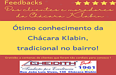 ⭐ ⭐ ⭐ ⭐ ⭐ "A Cheidith é a autoridade máxima em Chácara Klabin. Não perca tempo com outras." — Fonte: Facebook